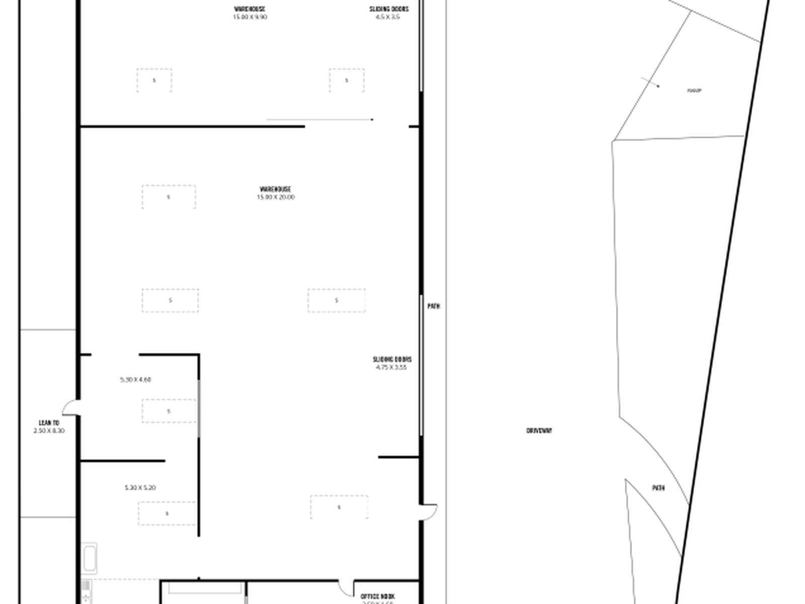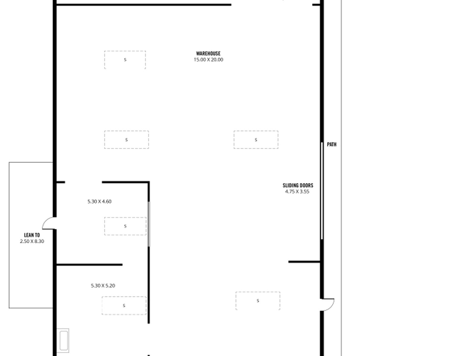 * 2 sliding door access to workshop